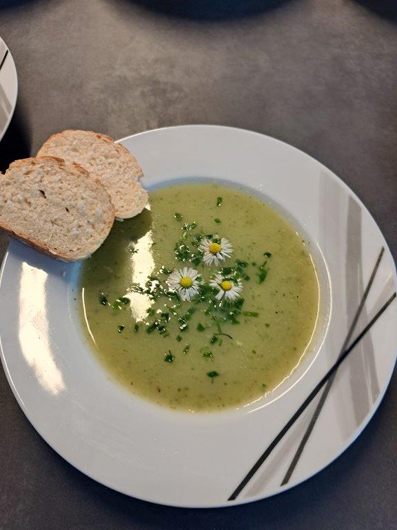 In unserem Workshopraum wurden anschließend die Kräuter sowohl für eine Kräutersuppe mit