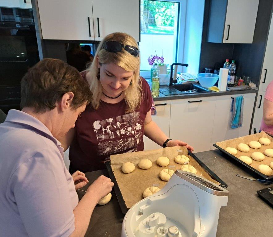 Gemüse, als auch für Nudeln mit Kräuterpesto verarbeitet. Zwischendurch wurden Semmerl gebacken