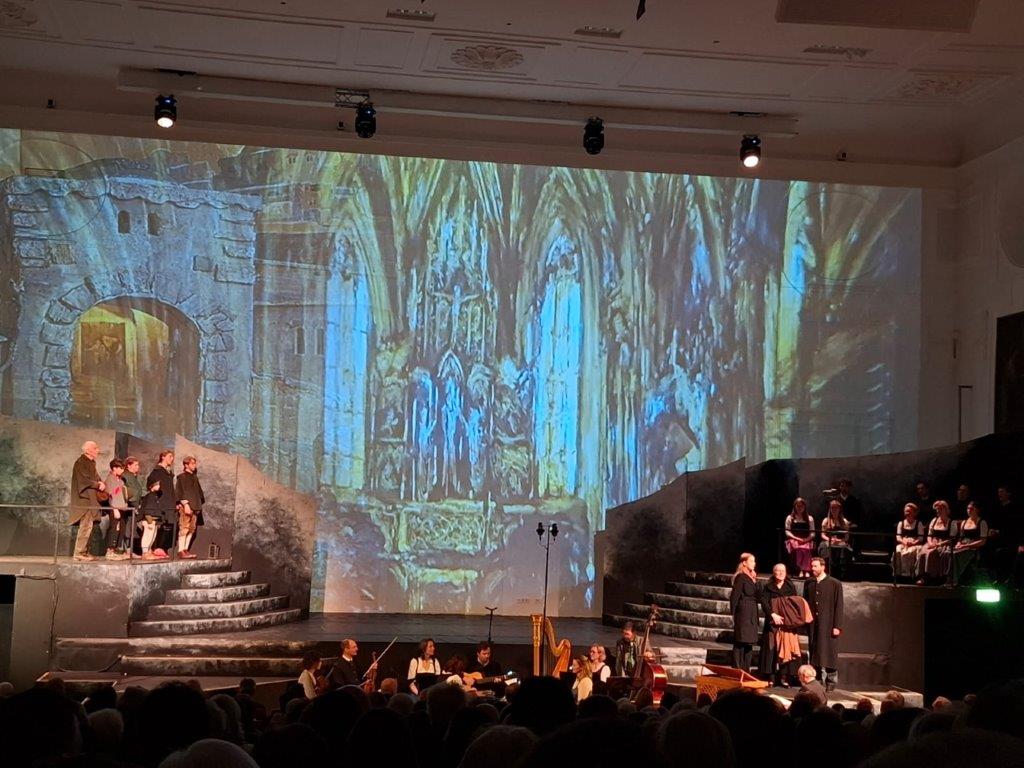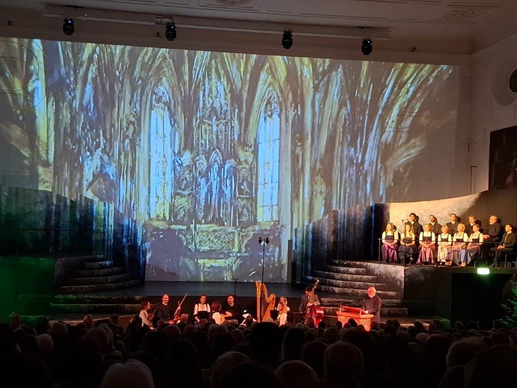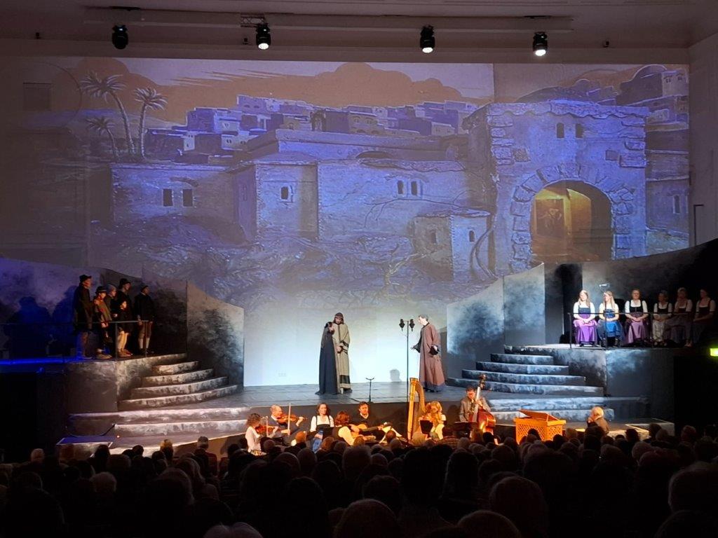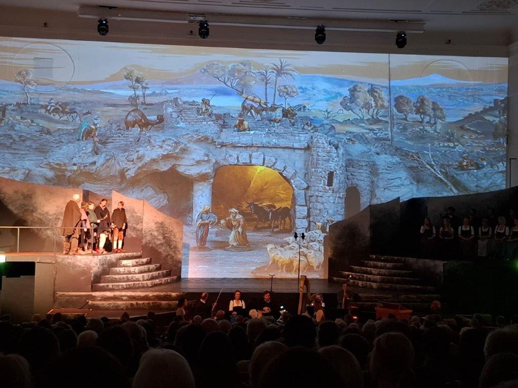 Universitätsaula. Dabei wurde die Weihnachtsgeschichte in eindrucksvoller Kulisse mit verschiedenen